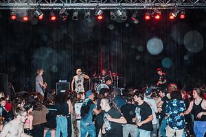 A crowds eye view shot of the band Warning? preforming at the Phoenix on 7/16